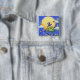 A fun button to wear for Halloween featuring a tap-dancing spider in front of a full moon.