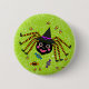 It's Halloween night and this spider is out for some trick-or-treating fun! Wearing her witch costume complete with striped orange and black stockings, witch's shoes with buckles, and a witch's hat, she smiles as she fills her web with candy. Background is green with spider web.