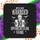 This funny Halloween wedding anniversary design is perfect for a married couple celebrating 10 years of spooktacular marriage! Fun matching couple design for an October or Halloween theme 10th wedding anniversary party. Features 'We've Been Married 10 Spooktacular Years' funny 10th wedding anniversary quote that is perfect for couples celebrating a Halloween wedding anniversary, October wedding anniversary or celebrating a spooky season spooktacular wedding anniversary!