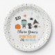 Halloween birthday spooktacular party plate with cute witch, black cat, frankenstein