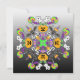 Halloween Party Invite with a Halloween themed mandala with skulls, bats, ghosts, candy and pumpkins with ombre black background. Good for kids or adults.