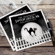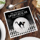 This spooky owl sitting in the dark foggy moonlight is a great way to invite your quests to your Spooktacular Halloween party. this design features Halloween spooky scary black cat, full moon moonlight fence, budget black,, and white postcard, kitty kitten Halloween spooky, minimalist simple whimsical typography, Halloween creepy black fog, black cat silhouette picket fence, Halloween paper napkin, Halloween party supplies, Halloween cocktail napkin