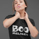 Goofy-eyed BOO for your Halloween. A simple design with goofy cross-eyed ghoul eyes saying BOO! Trick or treat fun will be had by all with this whimsical design. Happy Halloween fun with a black background and a simple white border, Personalize for yourself or your favorite ghosts and goblins. This design features Halloween costume funny simple boo, Halloween for her silly face, minimalist black and white cute, family name spooky creepy ghost, ghoul ghoulish spirit trendy typography, cool unique party humor horror, great for October fall autumn whimsical simple, minimalist modern fun women, cute humor saying, a cute women Halloween clothing t-shirt