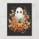 Cute autumn themed Halloween Ghost and Pumpkin postcard to get you in the Halloween Spirit.