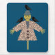 This awesome mousepad features a digital art image of a straw scarecrow with ravens sitting on its head and arms. The scarecrow is mounted on a wooden stake and is wearing an old blue shirt and brown jacket with buttons. It has a gray hat on its head and straw poking out from the arms of the jacket. The eyes are crosses and the mouth is twisted in an evil frown.