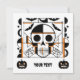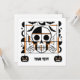 A bold and modern Halloween design featuring a geometric Bauhaus-style skull, bats, spider webs, and pumpkins in classic black, white, and orange. Perfect for spooky season lovers who want a stylish twist on traditional Halloween art.