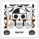 Halloween-style skull, bats, spider webs square sticker