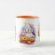 An Orange And White Combo Mug With Cupcakes And Ghost Center For Halloween Drinks