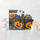 Modern Halloween symbols seamless pattern. Orange pumpkins ghosts, spiders and other Halloween symbols.