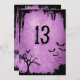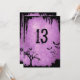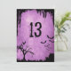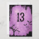 Halloween Table Numbers with bats, crow and tree over a purple background with a black grunge frame. This is perfect for a Halloween Wedding or Halloween Party. You can change the number and add it to your cart. Then, change to the next number and add one of that card to your cart. So, if you have ten tables, you will add each card once with the new number for ten times. The card matches the collection in my store called Halloween Wedding with Skull, Bats, Spider and Web.