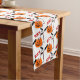 Table runner to accent your table decor is shown in a solid color of white with a festive Halloween print.