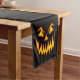 Table runner to accent your table decor is shown in a solid color of black with a scary halloween pumpkin face. Customize this item or buy as is.