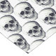 Table runner to accent your table decor is shown in a spooky Halloween skulls print on a White background color.