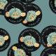 Outfit your trick or treater with this cute button to let treat-givers know that non-food treats are appreciated due to allergies. Design features a smiling teal jack o lantern pumpkin flanked by smaller gourds, with "non-food treats only please" in teal lettering.