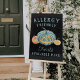 Let trick or treaters with allergies know that your home or business is a must-stop with this sweet sign. Design features a smiling teal jack o lantern pumpkin flanked by smaller gourds, with "allergy friendly treats available here" in teal lettering.