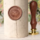 Before the wax hardens, gently and evenly press the wax seal stamp into the melted wax, ensuring it's centered.