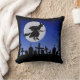 Halloween illustration with witch and gravestone decoration at full moon in grunge frame