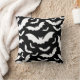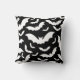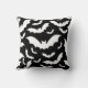 This throw pillow is shown in a black color with a Halloween bats print design.