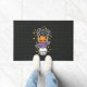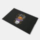 Doormat with a cute halloween design of a skull, bat, pumpkin, and spider.