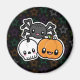 Magnet with a cute halloween design of a pumpkin, skull, and spider.