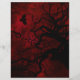 Dark red, atmospheric sky with creepy, crooked tree and crow silhouettes.