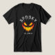This T-shirt features a chilling Halloween design on a black background, perfect for the spooky season. The centerpiece showcases a menacing jack-o'-lantern face with glowing orange and yellow eyes and a jagged, fiery grin. Above, the word "SPOOKY" arches in dripping white letters, while "HALLOWEEN" sits below in a matching dripping font, enhancing the eerie effect. The bold contrast and haunting imagery make it a standout choice for Halloween festivities.
