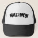 Halloween. Cool and funny design. Cool font. Black and white. Witch on a broom