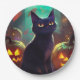 Halloween Tuxedo Cat With Pumpkins Scary Paper Plates