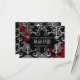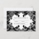 Personalized Gothic style wedding RSVP card for your Halloween or vampire theme wedding. It is black with a light to dark gray damask pattern on it and blood splatters that you can remove if desired. Add your own text on the front and the back.