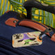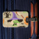 Halloween vintage pattern luggage tag that includes knife, witch, and bats to add to your Halloween travel accessories collection.