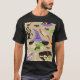 Halloween vintage pattern t-shirt that includes knife, witch, and bats to add to your Halloween clothing and wardrobe collection.