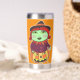 A fun vintage style retro inspired classic old school witch hand drawn illustration spooky fun cartoon art October spooky season fun horror aesthetic illustrated unisex deluxe witchy fun deluxe to-go tumbler style travel coffee tea or cocoa mug. Get a fun and unique Halloween fun spooky tumbler today.