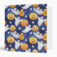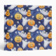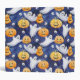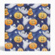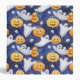 This design features a whimsical and festive Halloween-themed watercolor pattern. The design includes a dark, starry night sky as the background, which sets the stage for a collection of friendly ghosts and cheerful jack-o'-lanterns. The ghosts are painted in soft whites with various cute expressions, floating playfully around the scene. The pumpkins are bright orange, with carved faces ranging from happy to mischievous. Small white skulls are scattered throughout, adding to the Halloween ambiance. The overall pattern is fun and lighthearted, perfect for celebrating the spooky season in a cute and charming way.