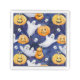 This design features a whimsical and festive Halloween-themed watercolor pattern. The design includes a dark, starry night sky as the background, which sets the stage for a collection of friendly ghosts and cheerful jack-o'-lanterns. The ghosts are painted in soft whites with various cute expressions, floating playfully around the scene. The pumpkins are bright orange, with carved faces ranging from happy to mischievous. Small white skulls are scattered throughout, adding to the Halloween ambiance. The overall pattern is fun and lighthearted, perfect for celebrating the spooky season in a cute and charming way.