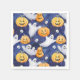 This design features a whimsical and festive Halloween-themed watercolor pattern. The design includes a dark, starry night sky as the background, which sets the stage for a collection of friendly ghosts and cheerful jack-o'-lanterns. The ghosts are painted in soft whites with various cute expressions, floating playfully around the scene. The pumpkins are bright orange, with carved faces ranging from happy to mischievous. Small white skulls are scattered throughout, adding to the Halloween ambiance. The overall pattern is fun and lighthearted, perfect for celebrating the spooky season in a cute and charming way.