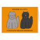 Two cartoon fluffy kittens with fangs, one black and one gray. The image has an orange colored background and is accompanied by the words 'Wishing you both a fangtastic wedding anniversary'.