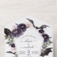 Halloween October 31st Autumn Fall Dark Watercolor Purple and Green Wedding Invitations on Black background - includes haunting and scary elegant script typography with modern Flowers and Bat Wings for the special Creepy Wedding day celebration.