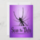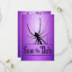 Halloween wedding Save the Date cards with large black spider and custom black text - you can change names and wedding date, printed on purple background