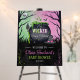 Welcome your guests to a wickedly wonderful celebration with this pink and green watercolor baby shower sign! The design features a frame of creepy tree branches around a cauldron with a witch hat and broom. The perfect for a cute October baby shower or girl Halloween baby shower celebration with a modern witch vibes.