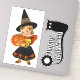 Cute, retro witch holding smiling pumpkin and owl on branch with "Happy Halloween" message is featured on these custom-cut stickers for Halloween! Great to use for decorating, scrap booking and more!