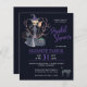 Chic elegant Halloween dark midnight blue and purple typography budget affordable bridal shower party invitation template featuring a witch in a purple grey dress and hat with a broom, brushwood, and cats.++++ Easy to personalize with your details. +++++++++ The invitation is suitable for a chic Halloween wicked witch themed bridal party. ++++++++++ PLEASE READ THIS BEFORE PURCHASING! This is a budget affordable wedding card printed on a paper sheet (each sheet has one card). ++++ For the best rapport price-quality, our advice is to choose the Semi-Gloss paper type (it is thick enough to be used for stationery) ++++ If you need envelopes, choose the ENVELOPE OPTION. +++ Double-check all the information and spelling of your text because you will receive exactly what you see - no one else will check anything before printing. ++++ This card is designed for size 4.5" x 5.6". In the case you choose another size of the card and text goes outside page, everything needs to be fixed before adding the product to cart. Please ask Live Design Service for help.