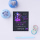 Chic elegant Halloween dark midnight blue and purple typography budget affordable bridal shower party invitation flyer template featuring a witch in a purple and pink dress and hat with a broom, brushwood, and cats.++++ Easy to personalize with your details. +++++++++ The invitation is suitable for a chic Halloween wicked witch-themed bridal party. ++++++++++ PLEASE READ THIS BEFORE PURCHASING! This is a budget affordable wedding card printed on a FLYER. ++++ Please note that BUDGET PAPER IS THIN - You can upgrade to have this card printed on cardstock ++++ ENVELOPES NOT INCLUDED. +++ Double-check all the information and spelling of your text because you will receive exactly what you see - no one else will check anything before printing. ++++ This card is designed for size 4.5" x 5.6". In the case you choose another size of the card and text goes outside page, everything needs to be fixed before adding the product to cart. Please ask Live Design Service for help.