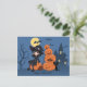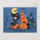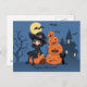 Halloween Witch, Black Cat, and Pumpkins Postcard