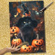 Transform your crafts with our bewitching Halloween decoupage paper! Featuring a charming black cat a witch hat amidst vibrant fall leaves. Add enchantment to your projects today!