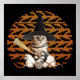 This funny cat lover Halloween holiday accessory is a great gift for a man, woman, teens & kids who love cats & Halloween. Purr-fect to wear as part of a costume to a Halloween party or while trick-or-treating. If you love Fall, pumpkins, Halloween, witches and cats, this festive design is for you! Features a funny graphic of a tabby kitty wearing a witch hat and holding a broom, sitting in front of an orange spooky bat pattern.