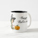 Twotone coffee mug shown with a halloween cute witch print. Mug has a black interior. Customize this item or buy as is.