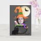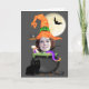 Halloween witch add your own photo template greeting card .. featuring funny witch hat, bat and moon and a cauldron full of scary things on a black background.. comes complete with white envelopes ..greeting cards by Ricaso