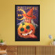 A fantastic vintage Halloween canvas print featuring a witch at Halloween night holding a funny pumpkin.