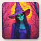 Halloween Witch with Skull Face Design Beverage Coaster
