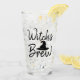 Make your next Halloween party a hit with this fun glass tumbler! It says "Witch's Brew" in trendy black script. The black witch hat adds a bit of whimsy to this fun spooky drinking glass!